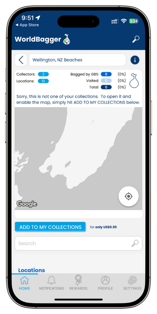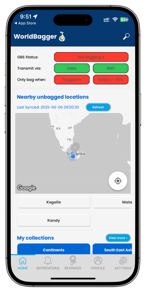 WorldBagger’s Global Bagging System lets you “bag” thousands of locations automatically and ticks them off in your Collections as you visit them.
